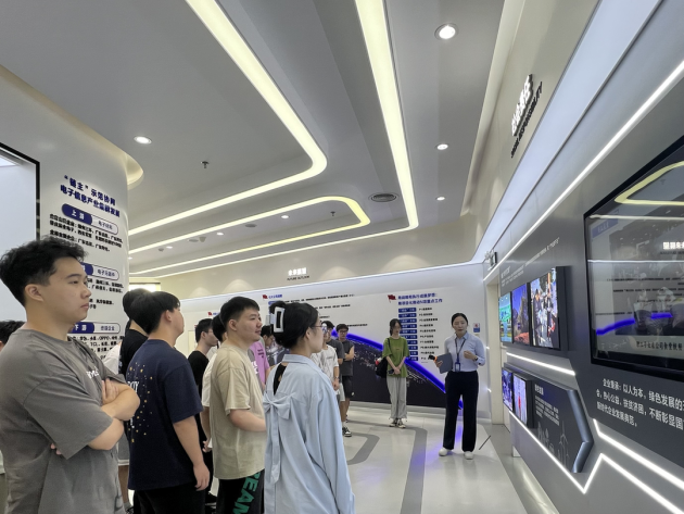 实习首日,同学们抵达风华高新科技股份有限公司后,首先参观了企业展厅,全面了解公司的总体布局、发展历程及国内外产业分布。公司不仅在国内多个重要城市如广东、香港、苏州等设有基地,还拥有由院士级专家带领的研发团队,展现出雄厚的技术实力与行业影响力。同学们还近距离观摩了公司核心产品——电容器、电感器和电阻器,并初步认识了其基本结构与分类。此外,通过介绍与华为、小米、美的、格兰仕等知名企业的合作关系,大家进一步了解到风华高科从家电领域起步,逐步拓展至AI智能与算力、新能源、通信网络、新能源汽车等前沿应用领域的战略布局与发展愿景。