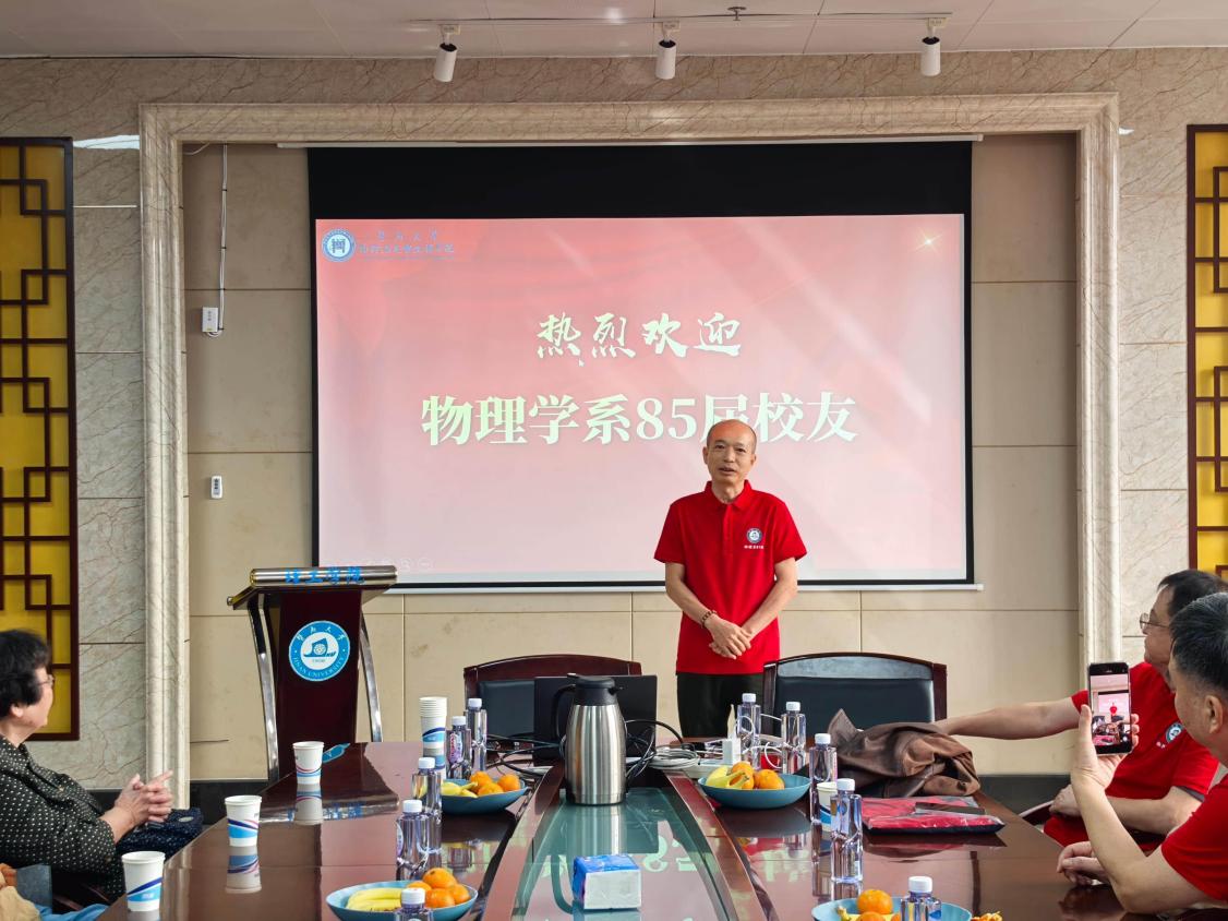 首先,孙玉环代表学院对海内外校友重返母校表示热烈欢迎,并指出恰逢学校正式启动迈向建校120周年盛典的倒计时一周年之际,能与各位校友在暨南园欢聚,倍感亲切与荣幸。她特别提到,2008年85届校友们怀着对母校的赤子之心积极捐资建立“物理学系思源实验室”。 这座实验室不仅是一个教学科研平台,更是一座连接过去与未来、承载情谊与希望的桥梁。它像一座灯塔,照亮了一批批物理学子探索科学奥秘的道路;它像一块基石,为物理学系的学科建设和人才培养提供了坚实的支撑。这份情谊,重如泰山;这份贡献,泽被后世。