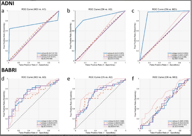 图2.熵指标在两个队列不同疾病进展阶段的诊断分类效能