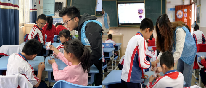 为响应国家“科技兴教,科普育人”号召,暨南大学物理与光电工程学院物理学系科普惠民志愿服务队分别在11月20日、11月27日走进暨大附小开展了“神奇的变色魔法世界”主题科普课堂活动。为保证课堂质量,服务队队员们提前半月备好紫甘蓝等实验器材,进行了多次打磨课程、试课,现场用通俗易懂的方式为小朋友们拆解变色现象的科学奥秘,带来一场趣味与知识兼备的科学体验。