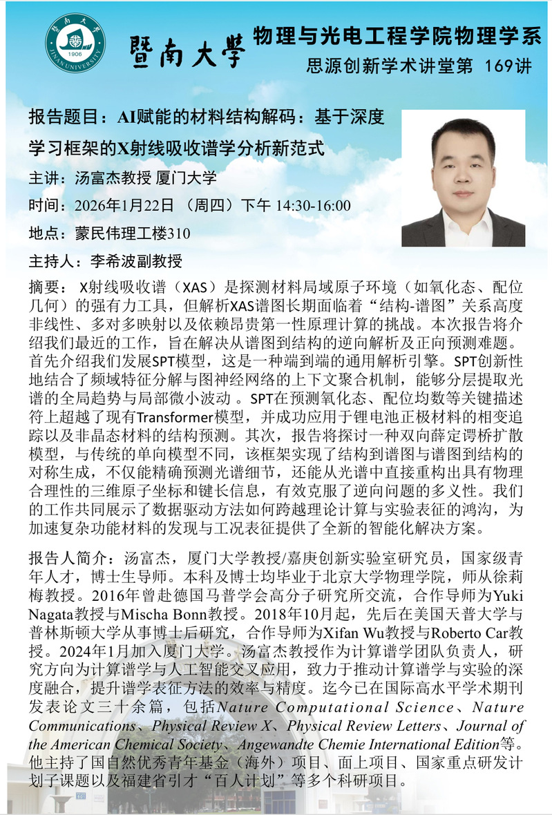 汤富杰:AI赋能的材料结构解码:基于深度学习框架的X射线吸收谱学分析新范式