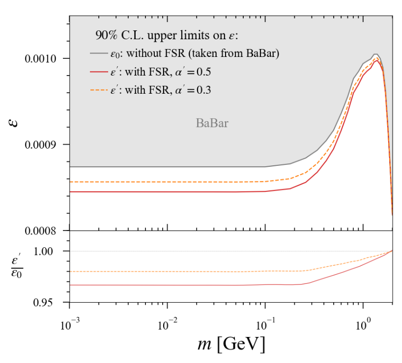 图2.暗希格斯对暗光子排除限的影响